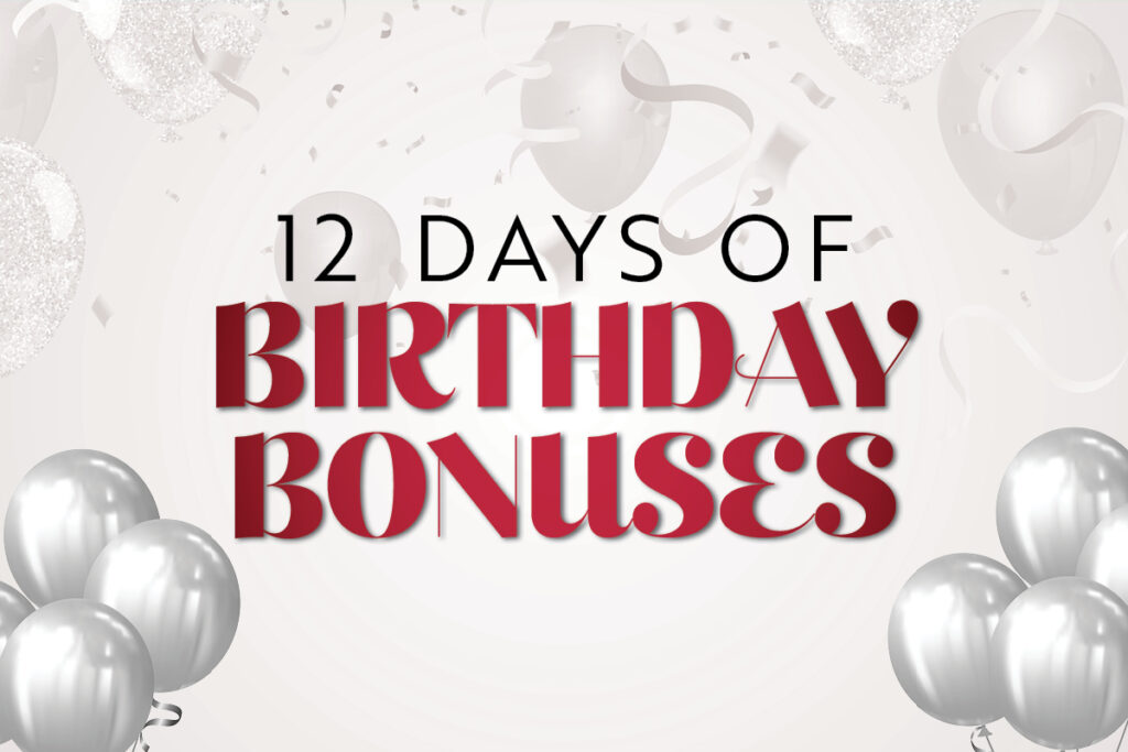 We’re celebrating with 12 days of birthday bonuses from February 1-12! Earn 25 same-day points from 8AM-11:59PM to unlock the kiosk game and win a mystery bonus entry multiplier for the birthday bucks blowout.