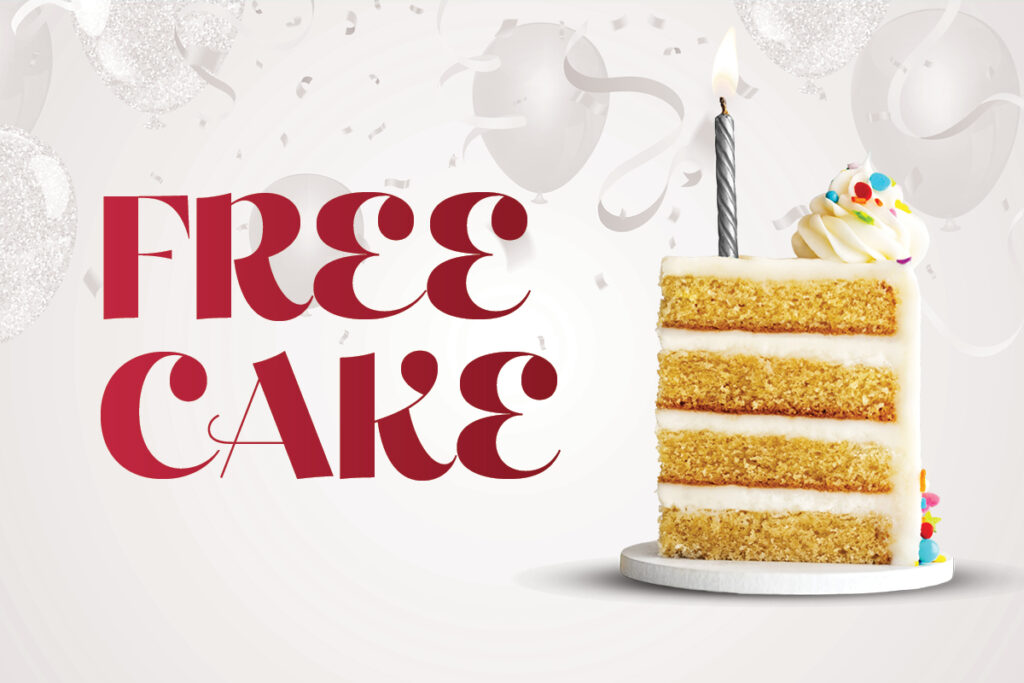 FastTrack Rewards members, join the birthday fun from 12PM – 2PM & 6PM – 8PM for a FREE slice of cake!